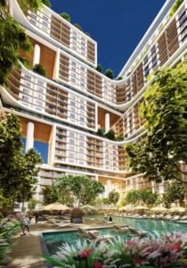 - Multiple swimming pools across the podium and sky levels